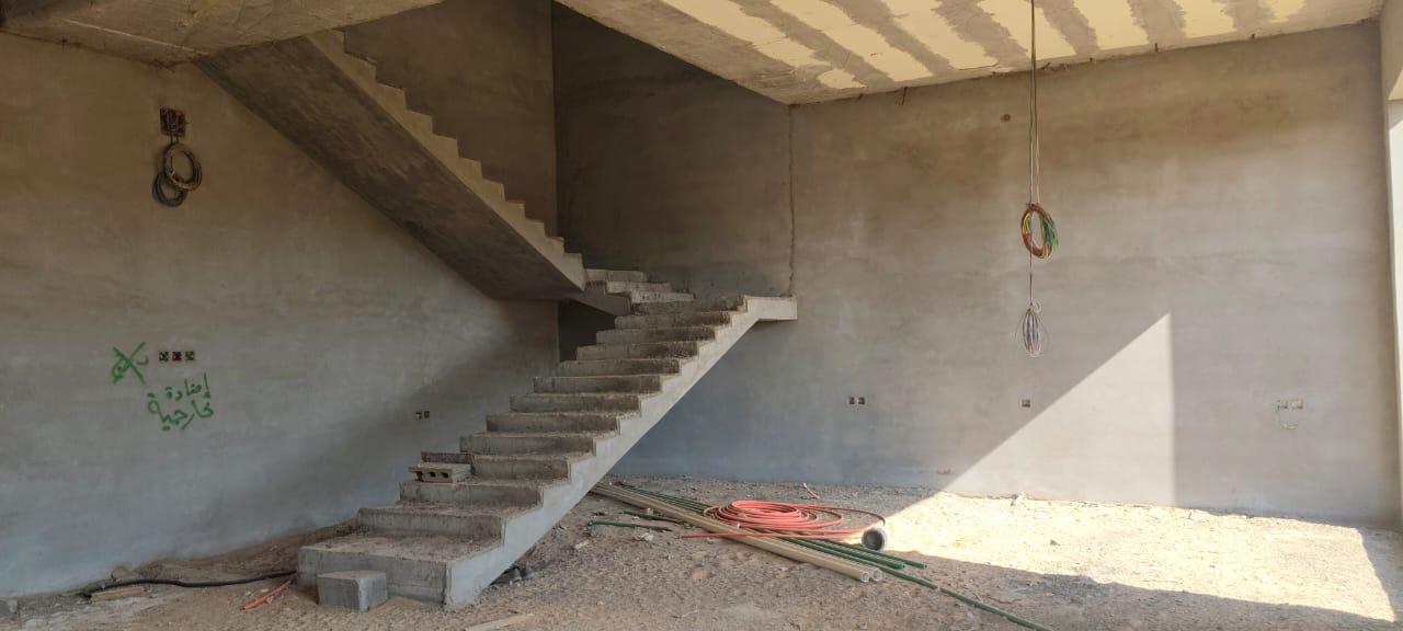 الدور الأرضي: صالة واسعة مفتوحة على الدرج