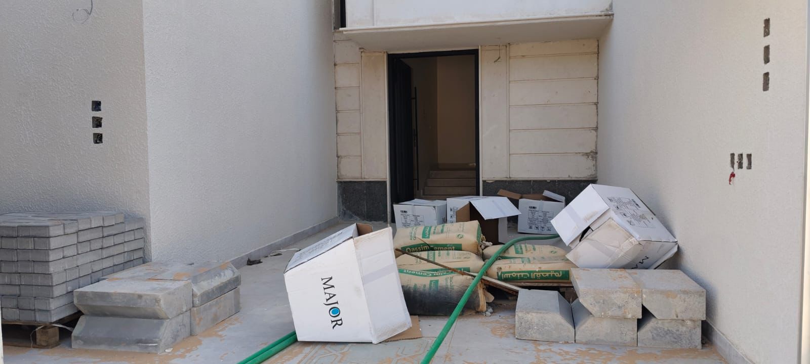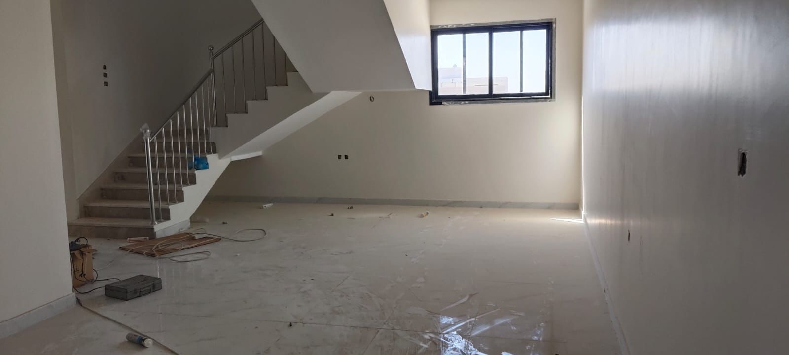 مجلس ومقلط مفتوح على الصالة ومطبخ