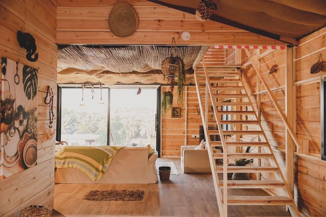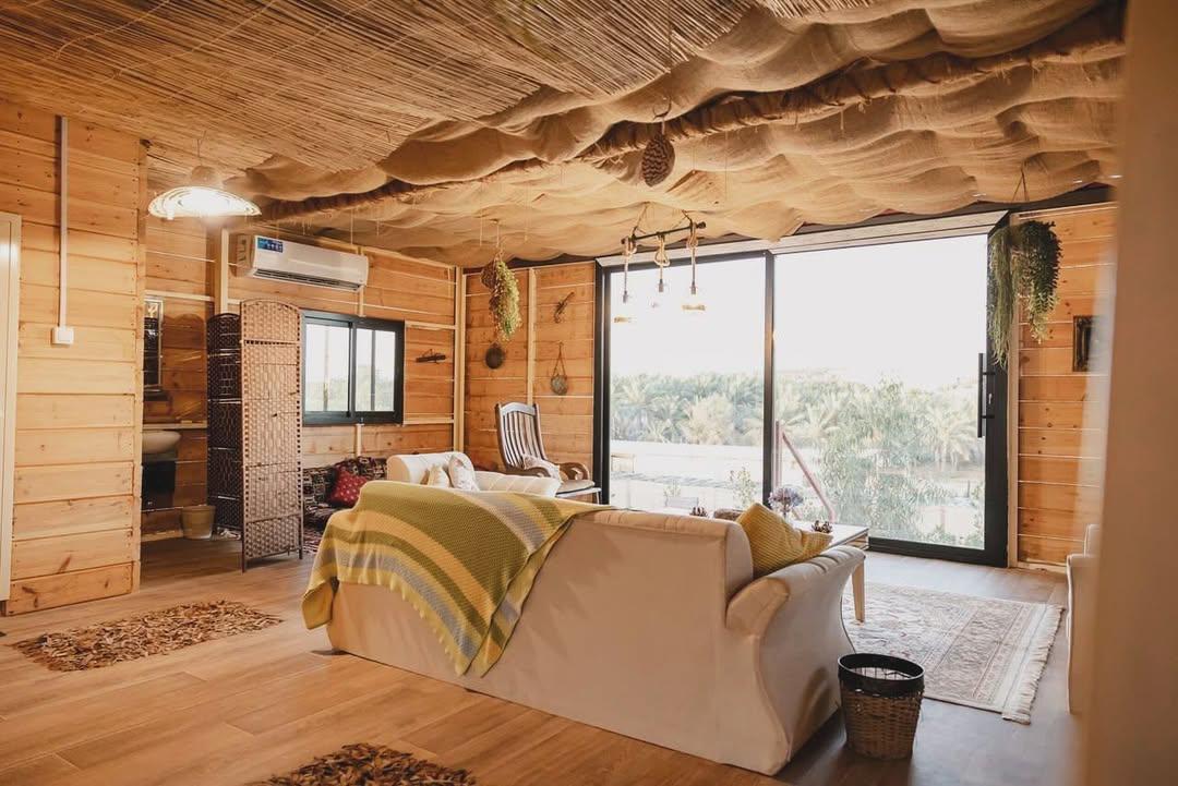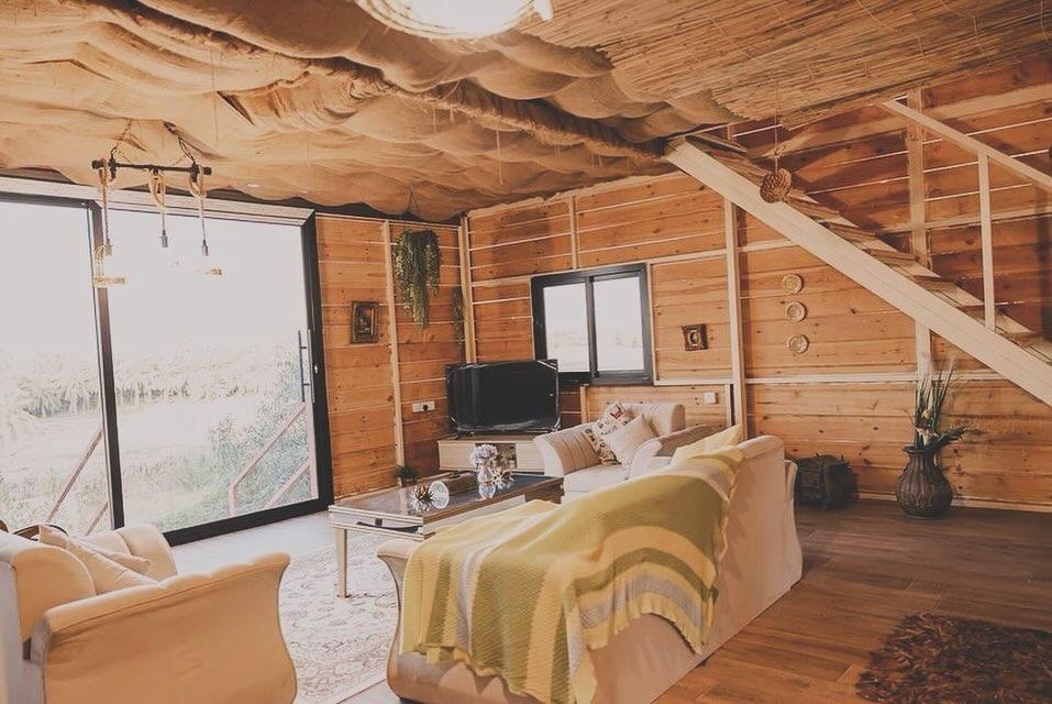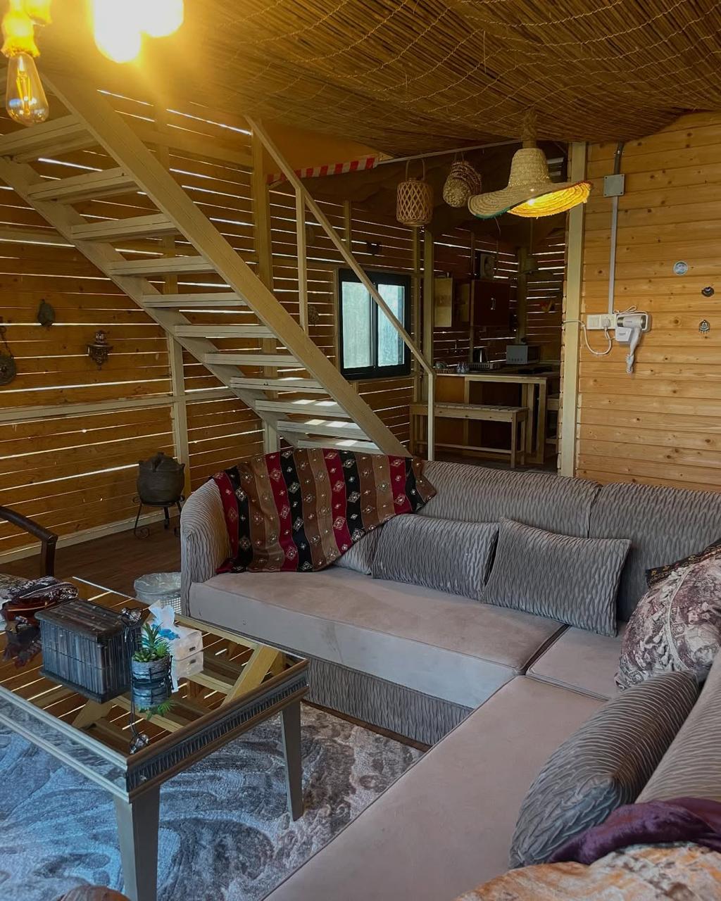 والاكواخ مفروشه ومؤثثه وفبها كنبات