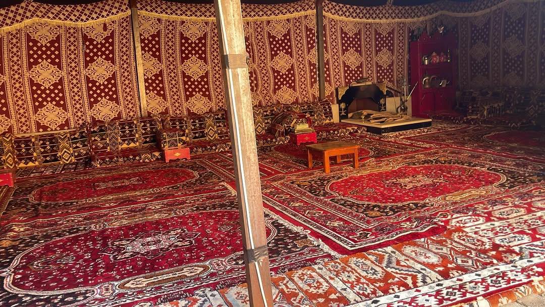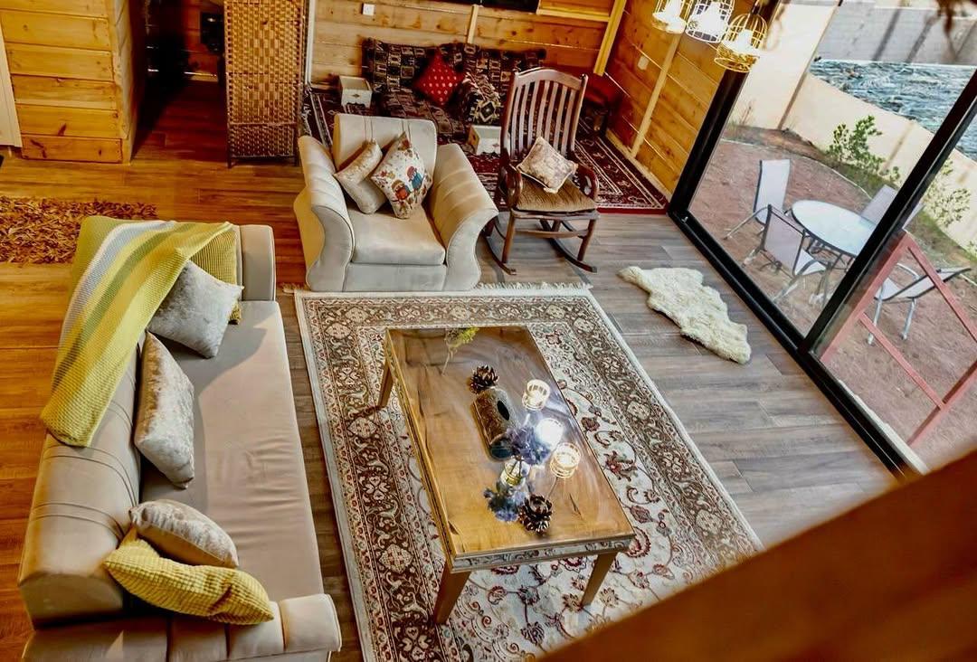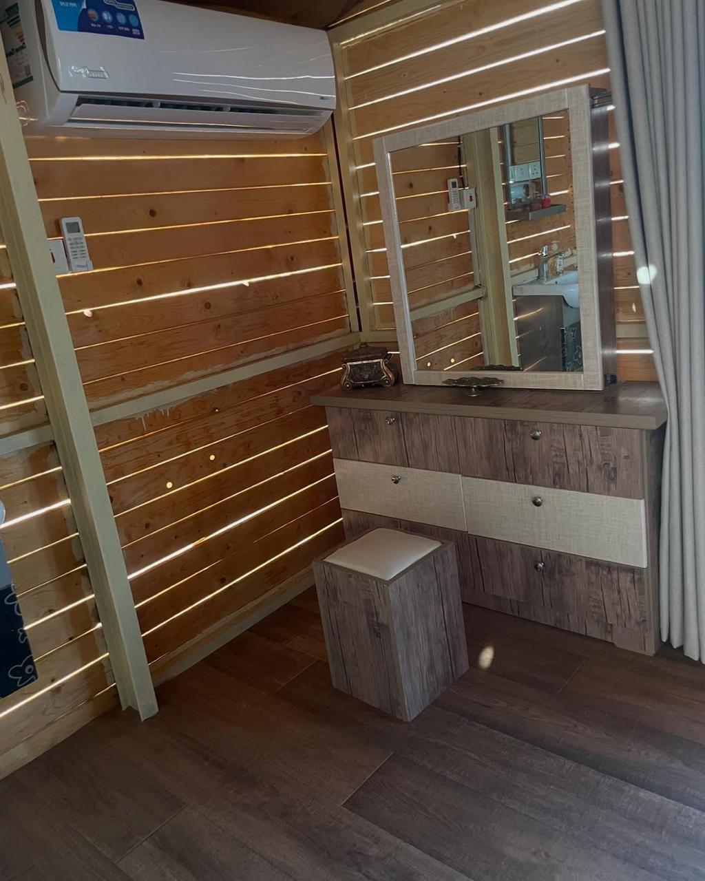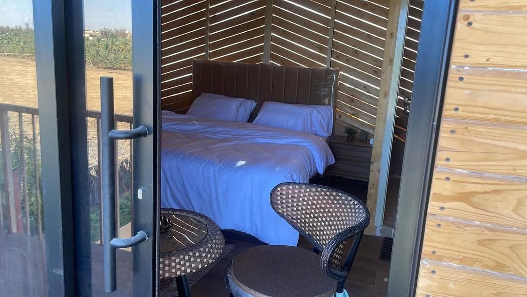 والاكواخ مفروشه ومؤثثه وفبها كنبات