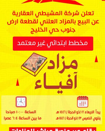 تعلن شركة المشيطي العقارية عن إقامة مزاد علني إلكتروني