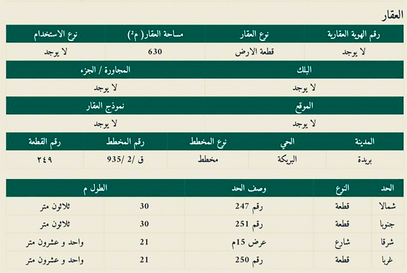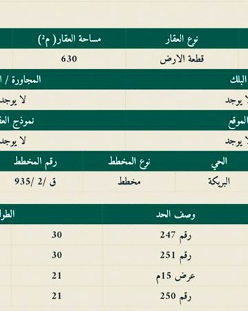 المساحه:630 متر