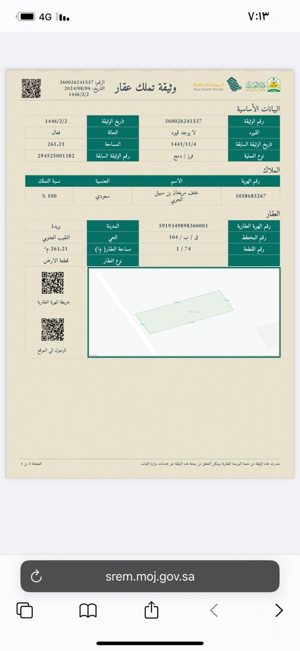 مساحة الشاليه ٢٦١ م مواثث بالكامل