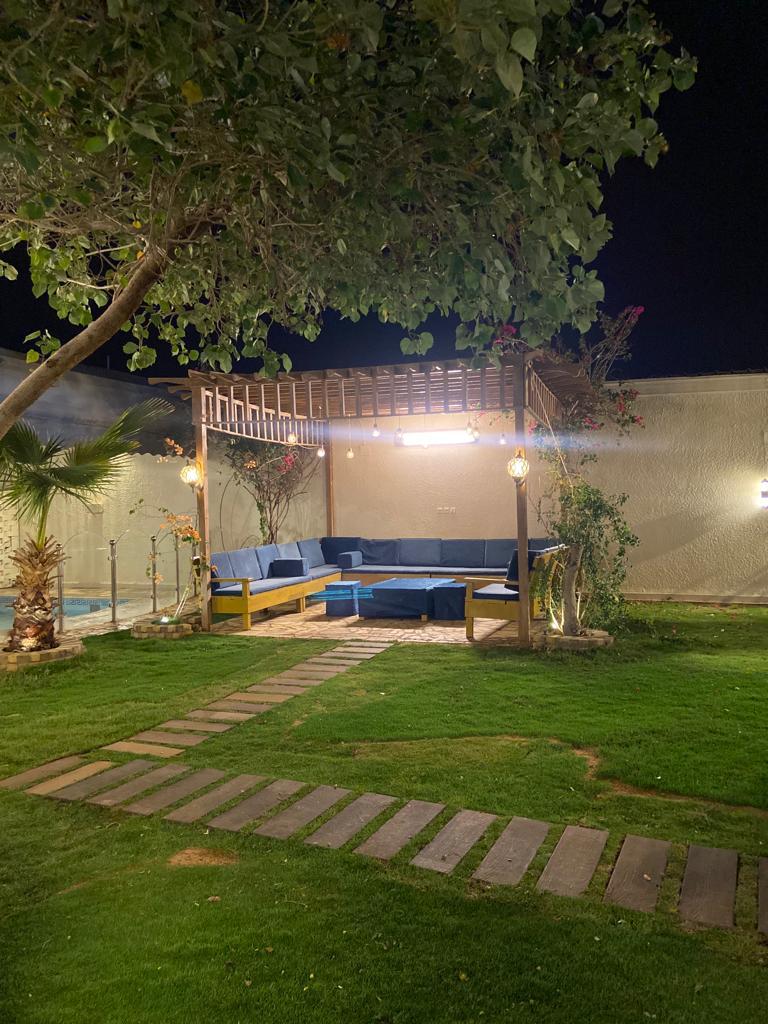 والحوش كامل ثيل طبيعي مع جلسه ريفي